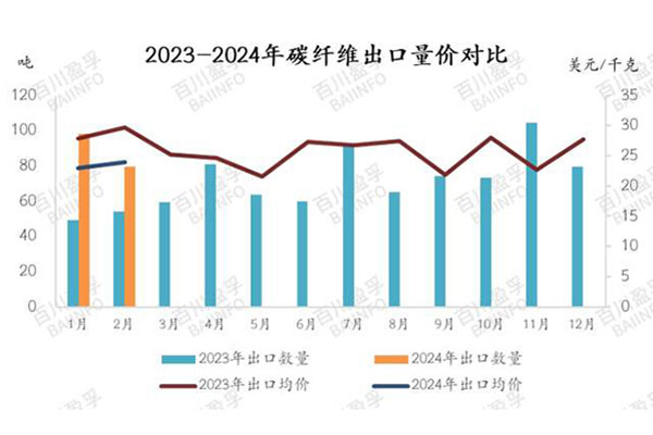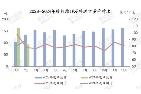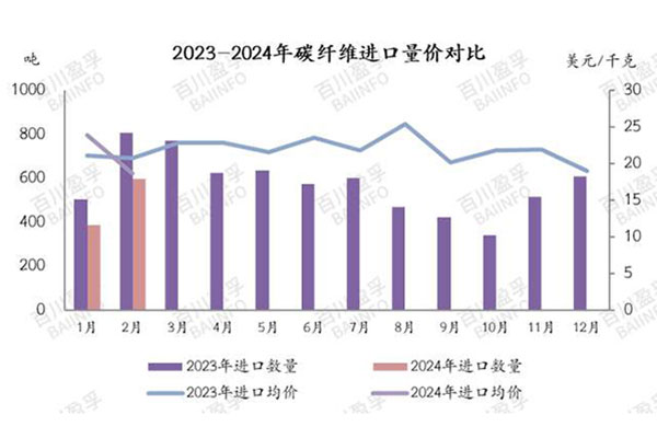 7. 從供需角度看,國內(nèi)碳纖維市場(chǎng)在2024年1-2月市場(chǎng)價(jià)格區(qū)間窄幅波動(dòng),下游需求相對(duì)平淡,進(jìn)口量尤其是碳纖維原料進(jìn)口量同比減少,顯示出國內(nèi)市場(chǎng)對(duì)碳纖維產(chǎn)品的需求結(jié)構(gòu)特征和國際市場(chǎng)競(jìng)爭(zhēng)態(tài)勢(shì)。